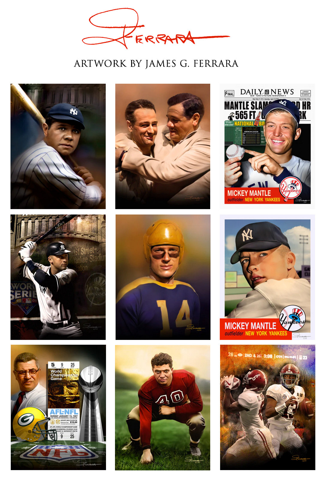 Memorializing both great figures and unforgettable moments in sports, James G. Ferrara has a unique talent for capturing the heart of the game.
